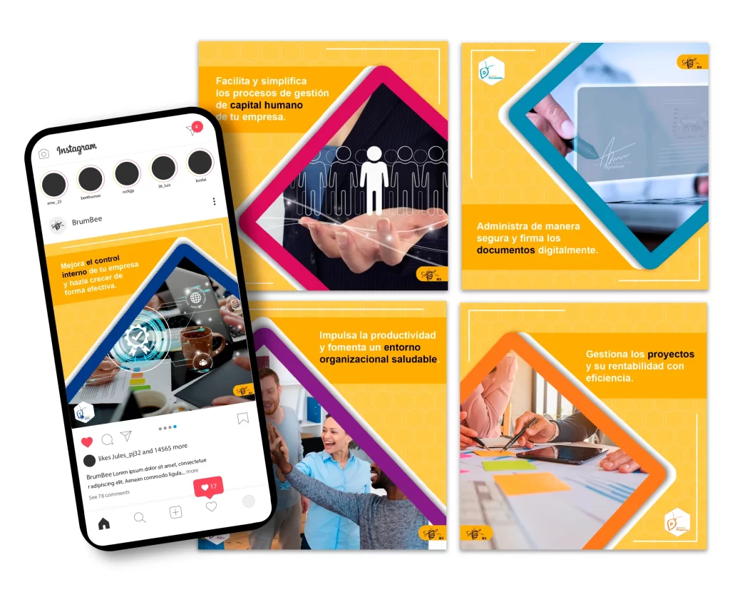 Realizar distintas publicaciones para redes sociales (Facebook e Instagram), para promocionar los productos de BrumBee, así como dar posicionamiento de marca mediante publicaciones de interés.