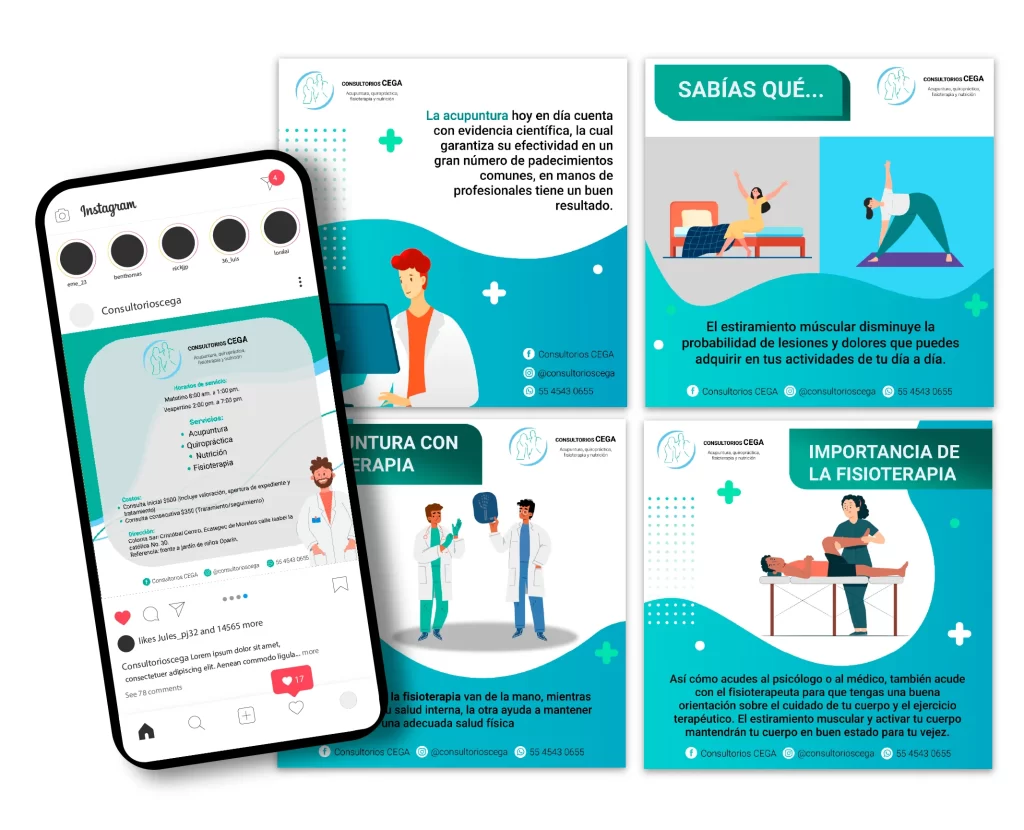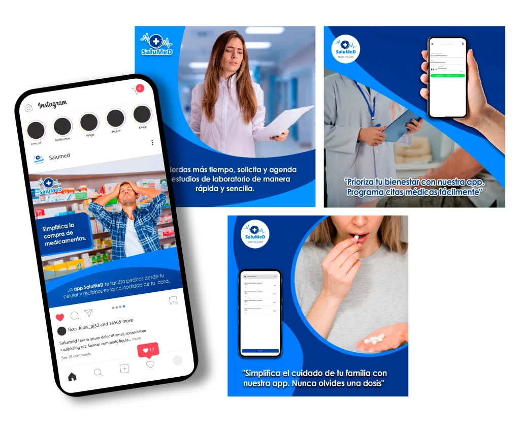 Realizar distintas publicaciones para redes sociales(Facebook e Instagram), para promocionar los servicios de una aplicación mobile acerca de agilizar temas de salud de manera virtual.